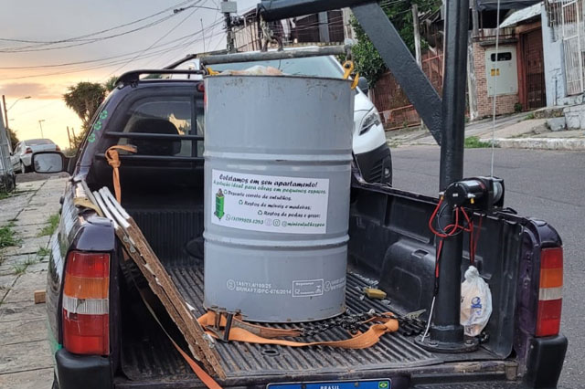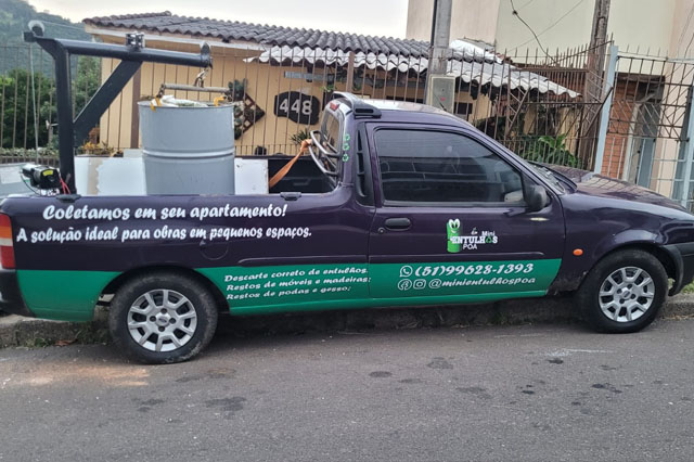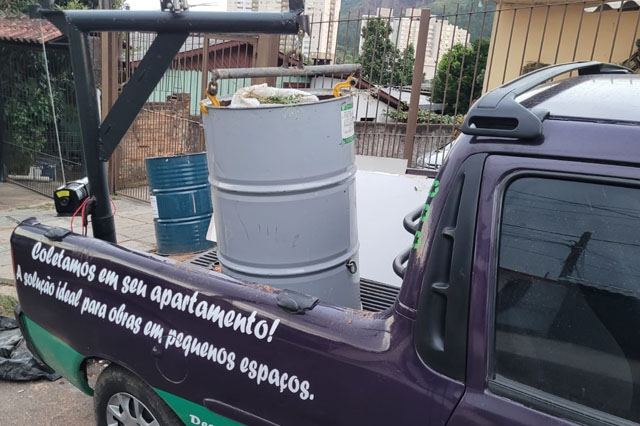 Coleta rápida de pequenos entulhos em Porto Alegre.